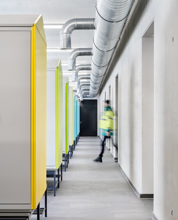 Aufgabe war es, die Bereiche Grünunterhaltung und Straßenunterhalt/ Tiefbau sowie Verwaltung und Ausbildung unterzubringen. Dazu zählen Montagebereiche, Carports, Bodenlager sowie Waschplätze.Das Sozialgebäude vereint die Nutzungen Sozial- und Sanitärbereich im Erdgeschoss, sowie Büroflächen in den zwei Obergeschossen. Die Anordnung der Büros erfolgte ringförmig um einen tragenden Kern mit Funktionsräumen. Die Energieversorgung des Betriebshofs erfolgt über Geothermie.