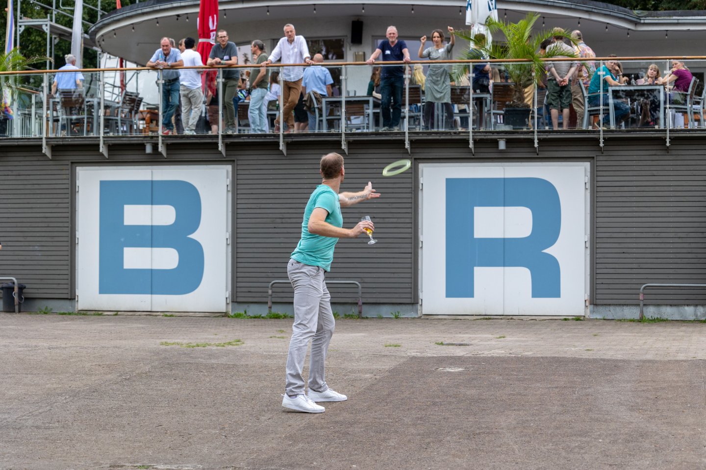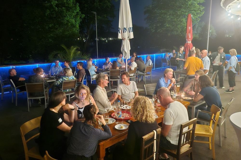 Bei all der guten Stimmung durfte natürlich die passende Musik nicht fehlen, für die unser DJ Jan Helmerding tatkräftig und pausenlos gesorgt hat. Und so wurde bis tief in die Nacht getanzt, gefeiert und natürlich auch über architektonische Themen, wie z. B. die statische Konstruktion der riesigen Sommerterrasse und des Anlegers des benachbarten Rudervereins Insider philosophiert.