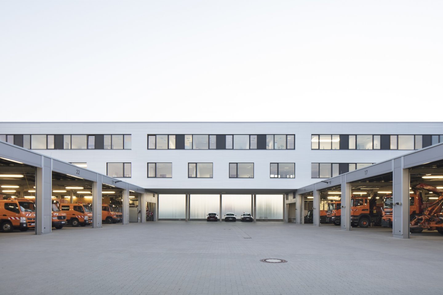 Es handelt sich hierbei um einen Neubau eines Betriebsgebäudes für technische Dienste mit Büro- und Sozialgebäude, Fahrzeugabstellhallen, Werkstattgebäude und Carport. Das Projekt wurde im laufenden Betrieb umgesetzt.